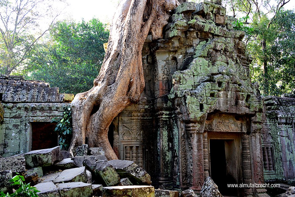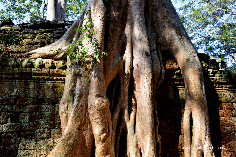 Trees growing out of the ruins of the Temple Ta Prohm, that´s why the temple is today one of the most famous temples in Angkor Wat. Tetrameles nudiflora is the name of one of the two predominate species of trees in the temple area.