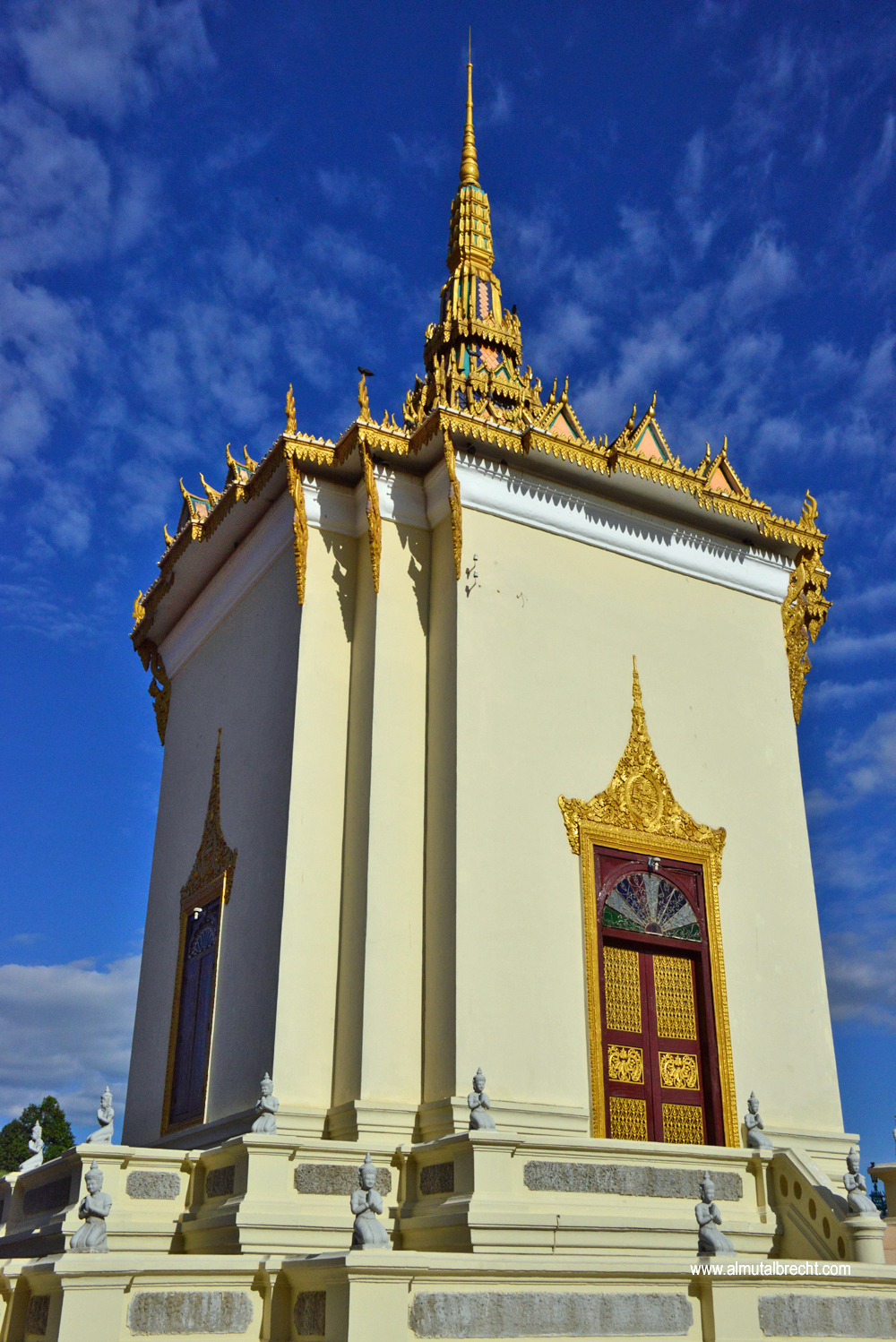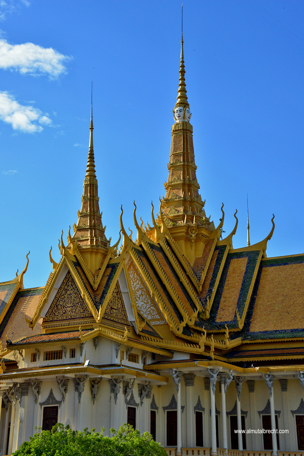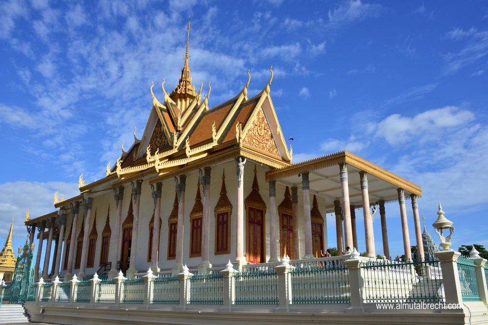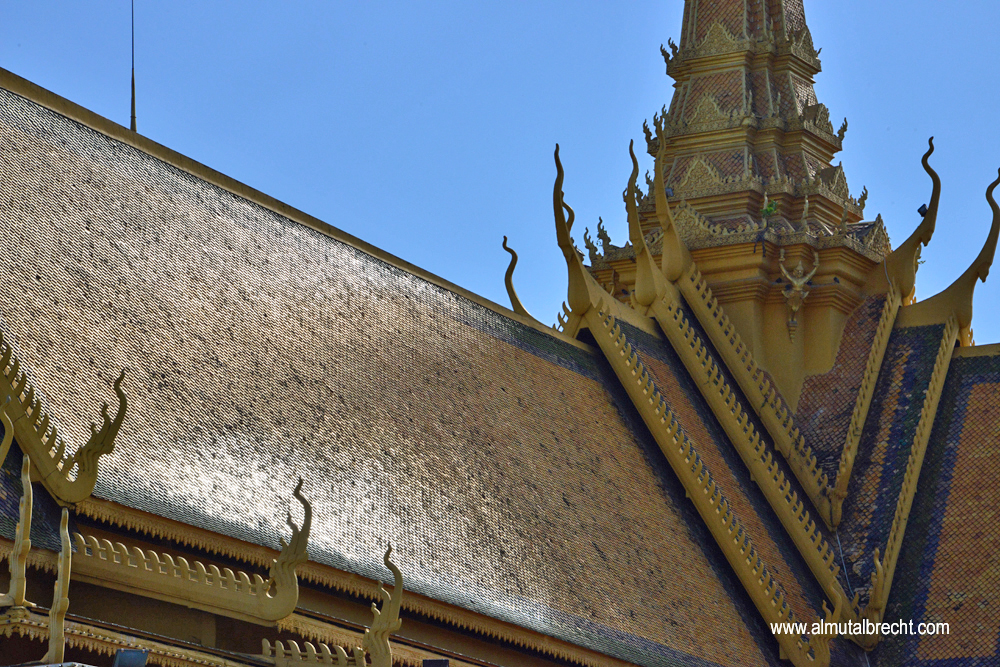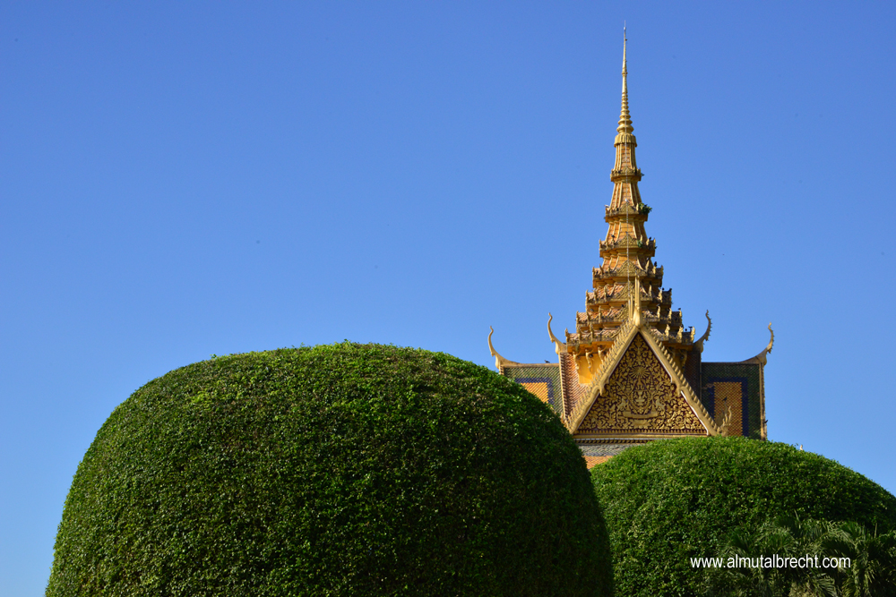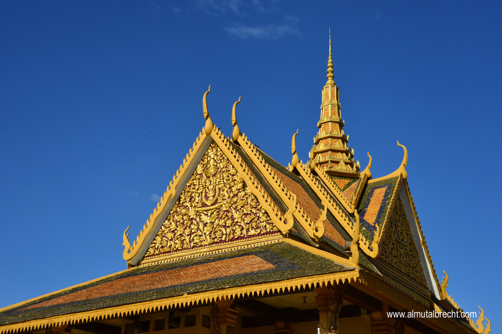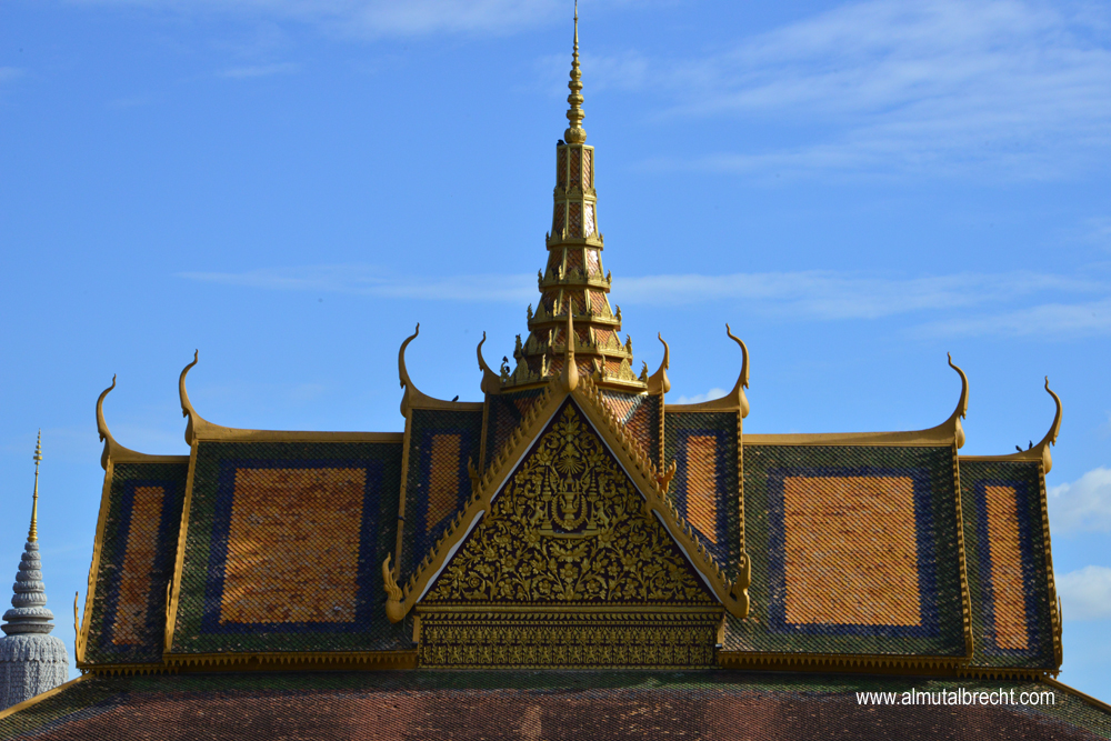 The Royal Palace is situated at the riverfront of the Tonlé Sap in Phnom Penh. Walls form the boundary of the area. Inside the area are several royal buildings: the throne hall, pavilions, stupas, the silver pagoda and living houses. The palace is still the official domicil of the King Norodom Sihamoni. Parts of the palace are not open for public. Actually the palace is used for ceremonies, celebrations and state visits / receptions.