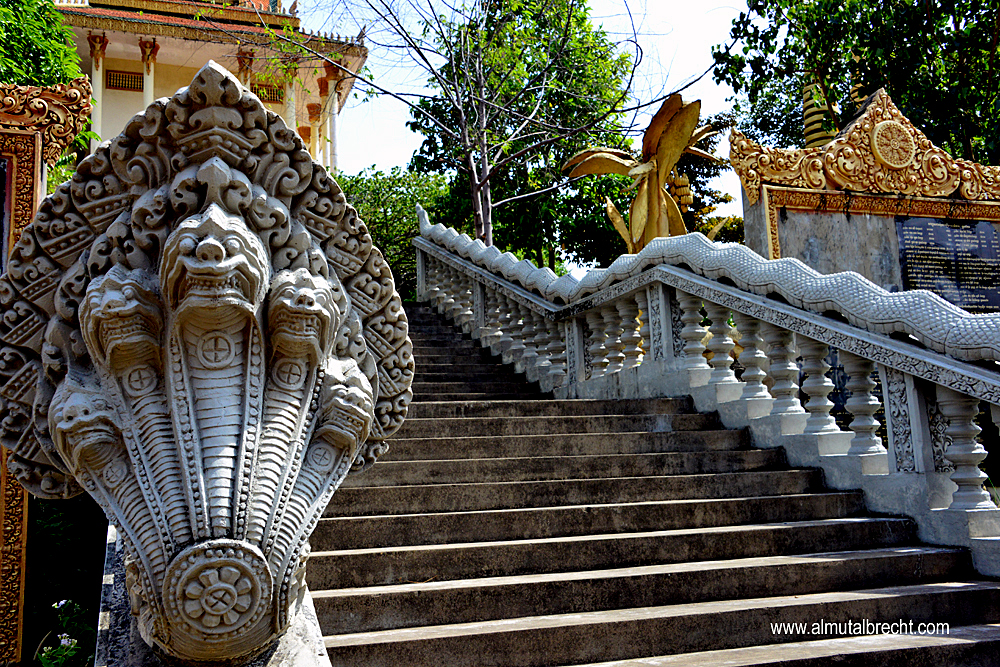 Wat Samathi is located in the National Park of the Kep Province. Built on the hills at an altitude of 800 m the Wat has a great balcony with a sea view. One buddhist monk stays there for guarding the area of the Wat, he was so friendly to guide me through the Wat and gives me explanations of the buddhist way to pray and meditate in the praying hall.