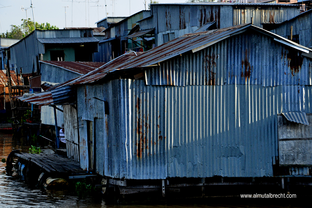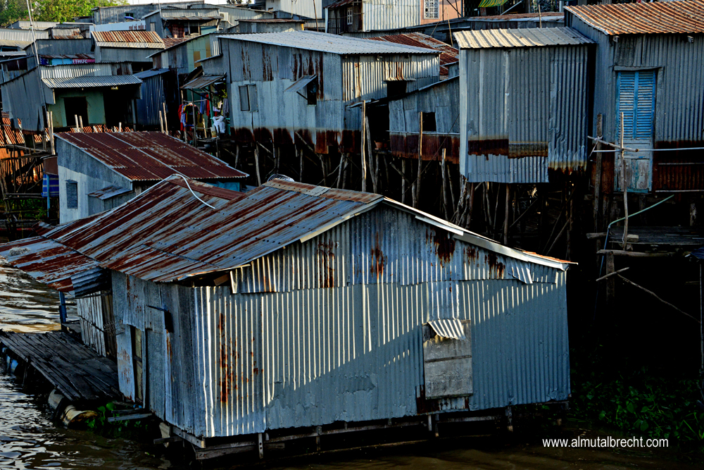 Slumhouses at the riverfront from Chau Doc, Vietnam