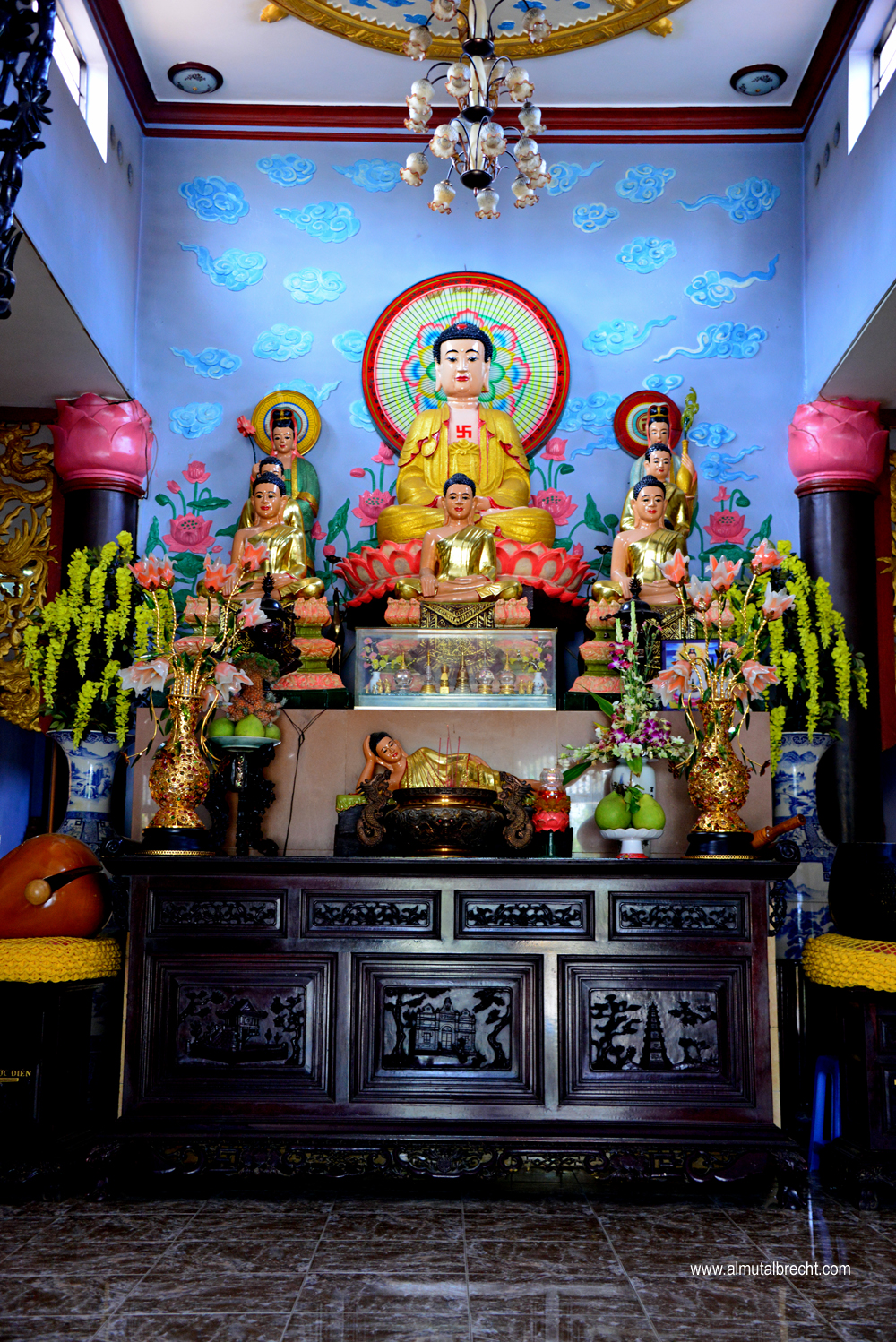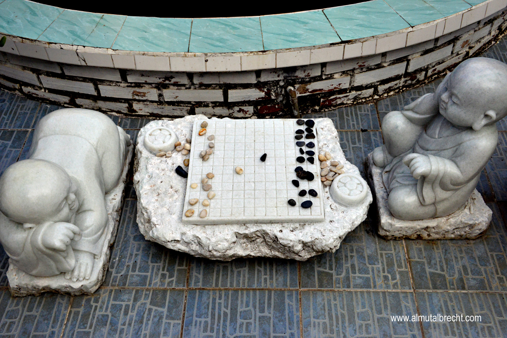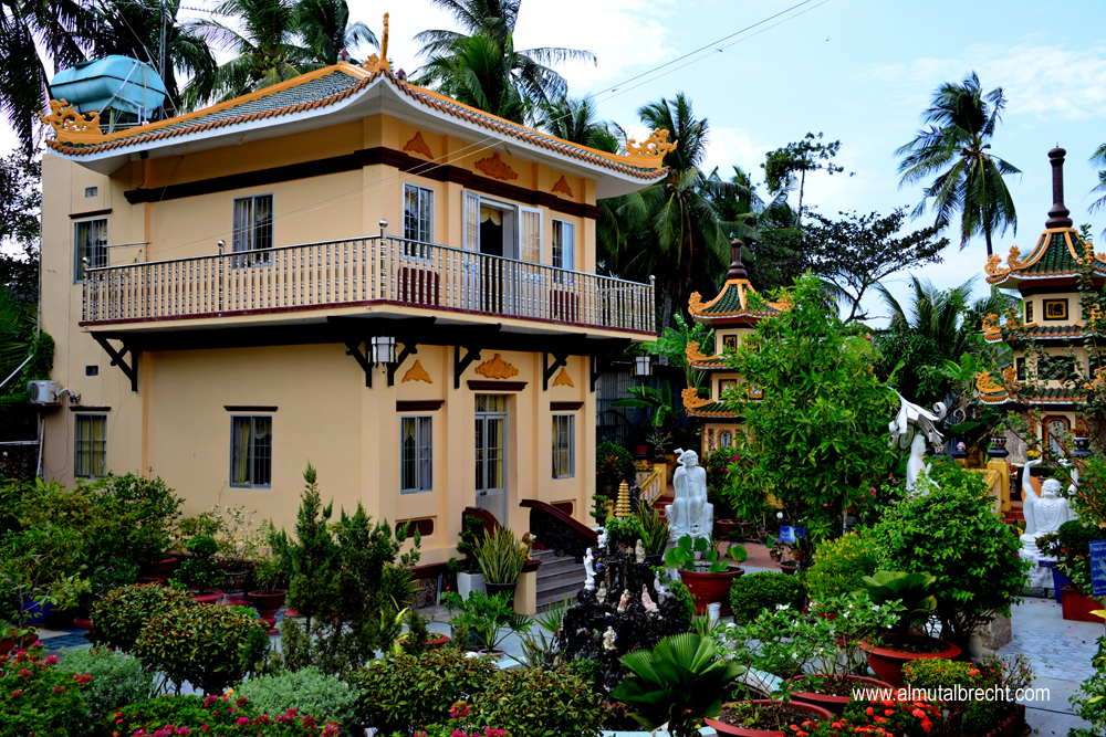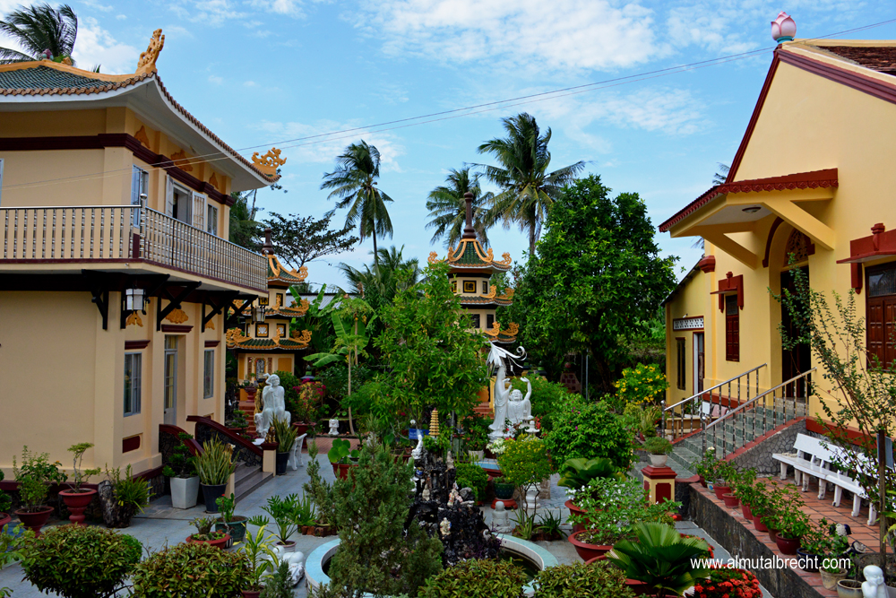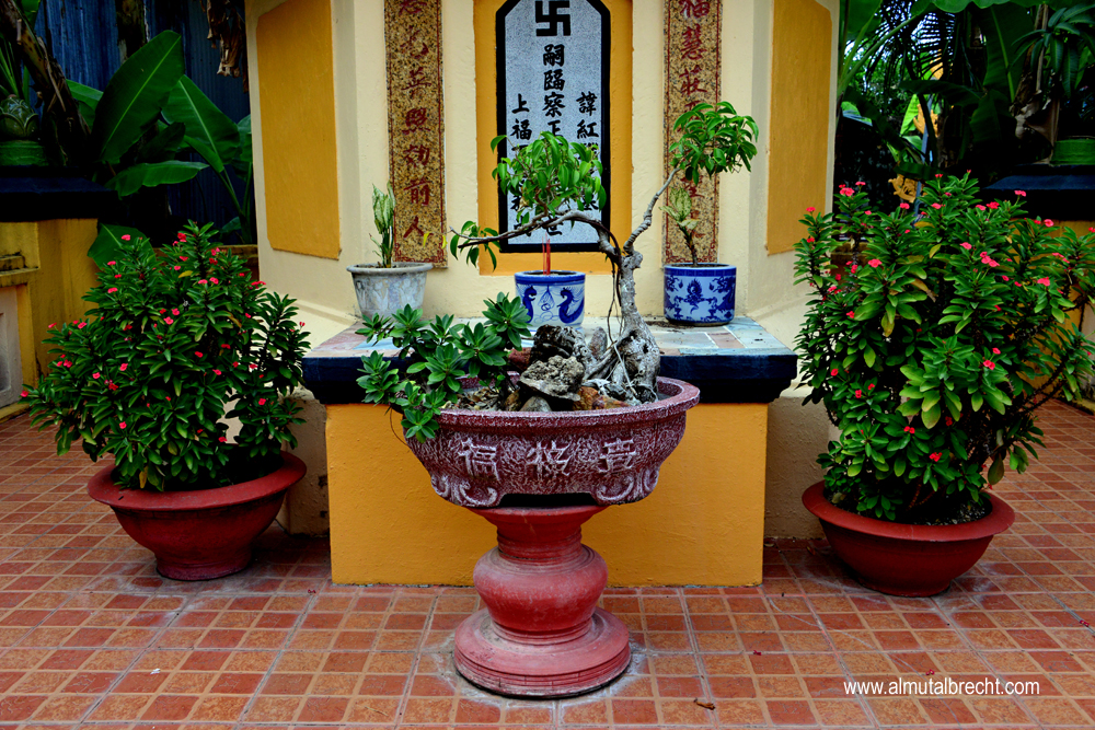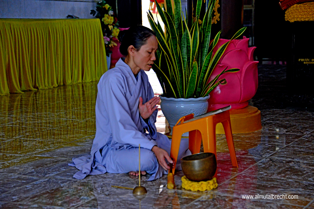 When I visit the Tam Bao Pagoda I could hear two buddhist nuns singing in the praying hall. In the area of the pagoda buddhist nuns have their living houses and a little garden for water lilys and other plants and for sculptures and buddha figures.