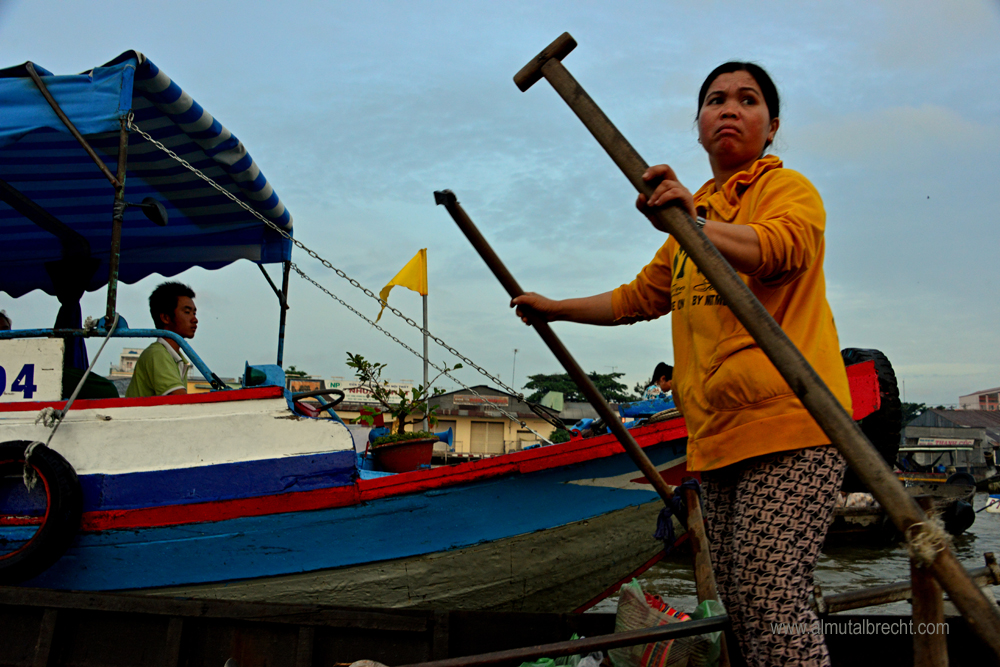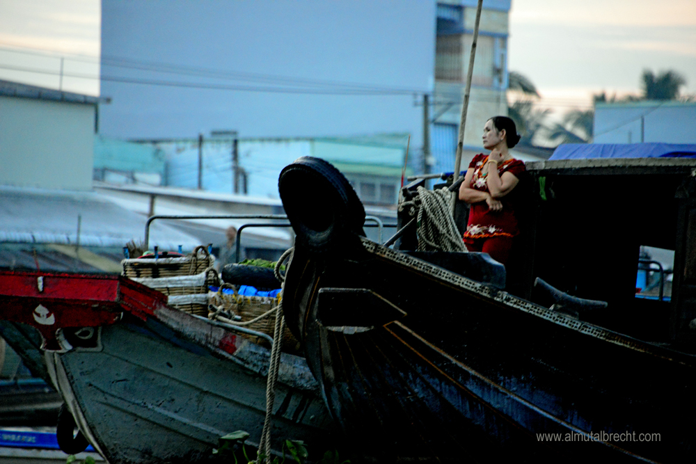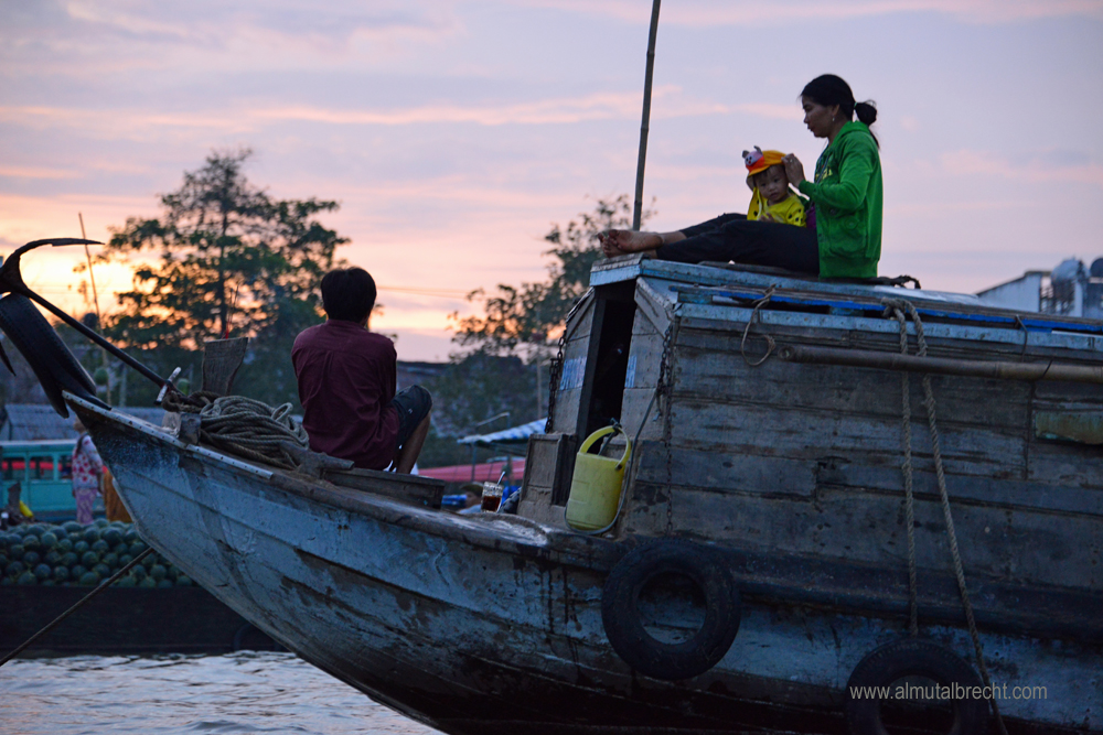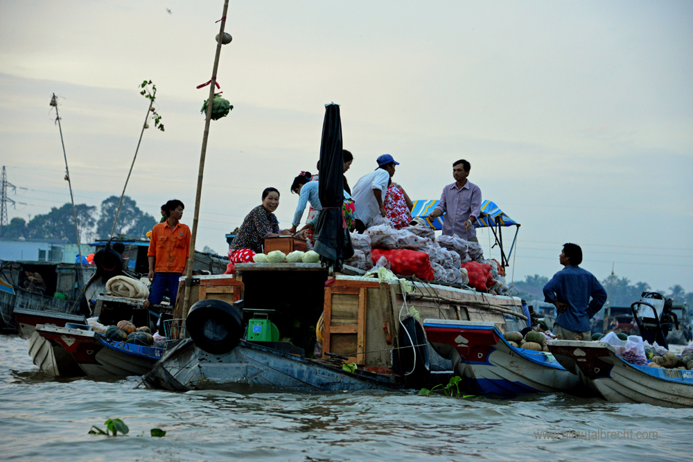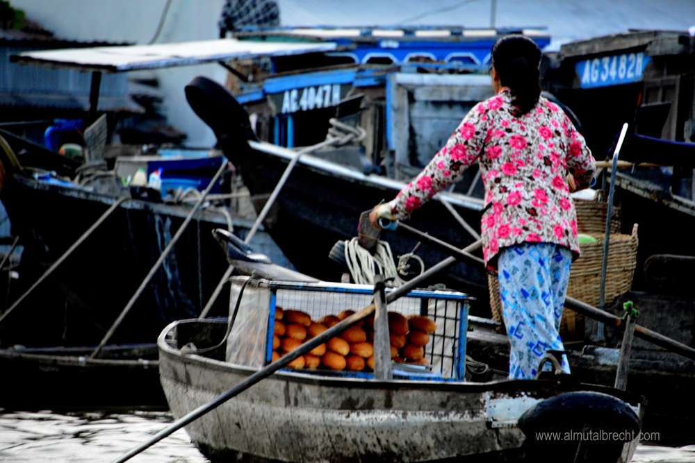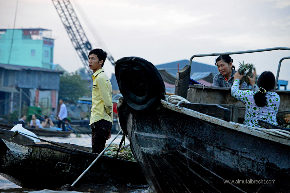 Early in the morning at 4 30 am I took a boat with a vietnamese guide to the famous floating market in Can Tho. It was quite difficult to take photographs cause of the little boat I was sitting in and the great, traditional wooden boats of the people who sell and buy fruits and vegetables on the market. The atmosphere in the morning, the people on their boats, who wait for customers, other boats and the beginning of the market, was impressive. Everything seemed so silent and attentive. Here are some of my attempts to document this morning on the floating market in Can Tho.