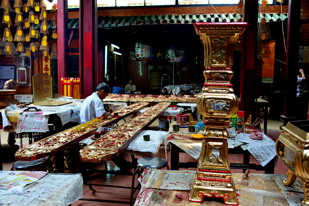 Restoration work at the Chua Ong Pagoda in Can Tho, Vietnam