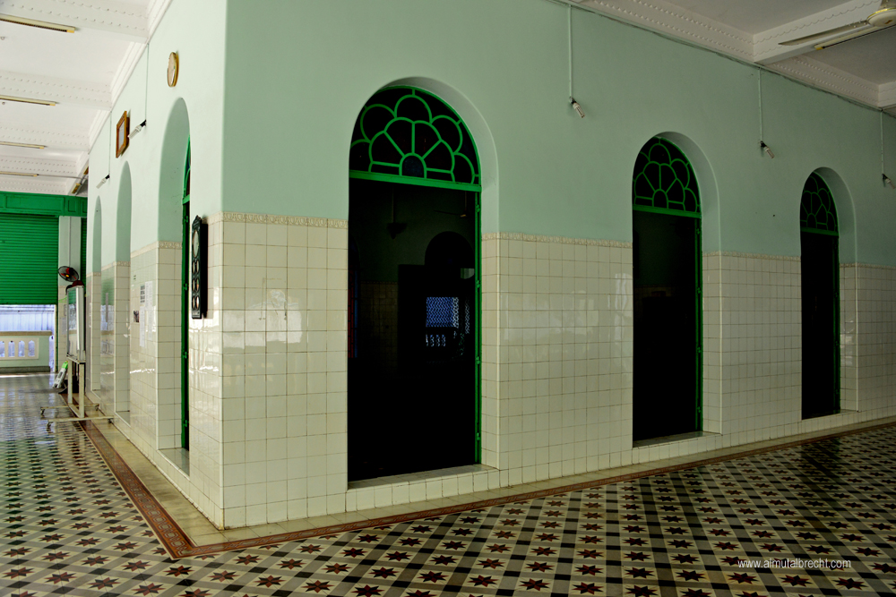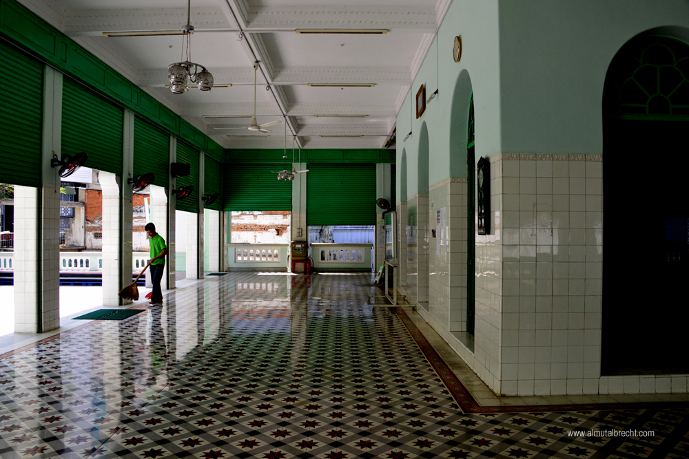 In the year 1935 southindian muslims built this mosque situated in Dong Du near the Dong Khoi with all the glitzy boutiques of the district 1 in HCMC. The white and green-washed walls now towered over by the Sheraton Hotel. The rounded curves of its arches and its slender minarets make a stark contrast to the utilitarian design of the hotel next door. Beside the praying rooms there is a water pool for the ritual washings: before believers are alowed to pray, they have to clean themselves. For the 6000 muslims in HCMC there are still 12 other mosques in the city.