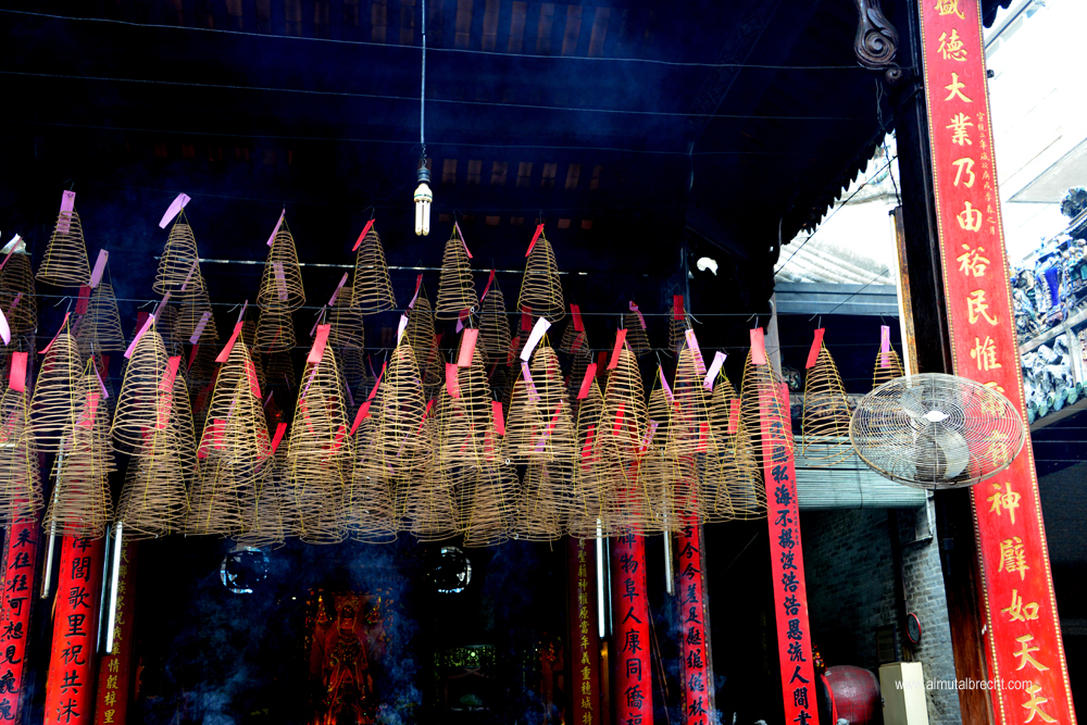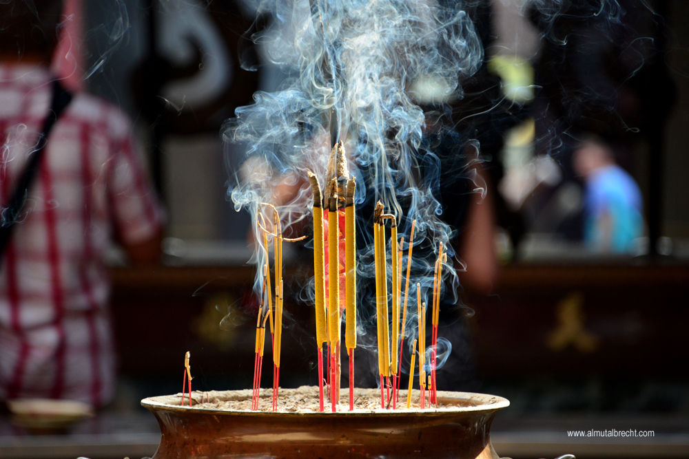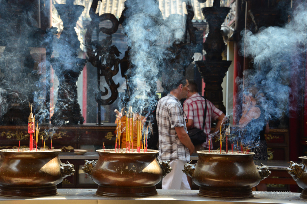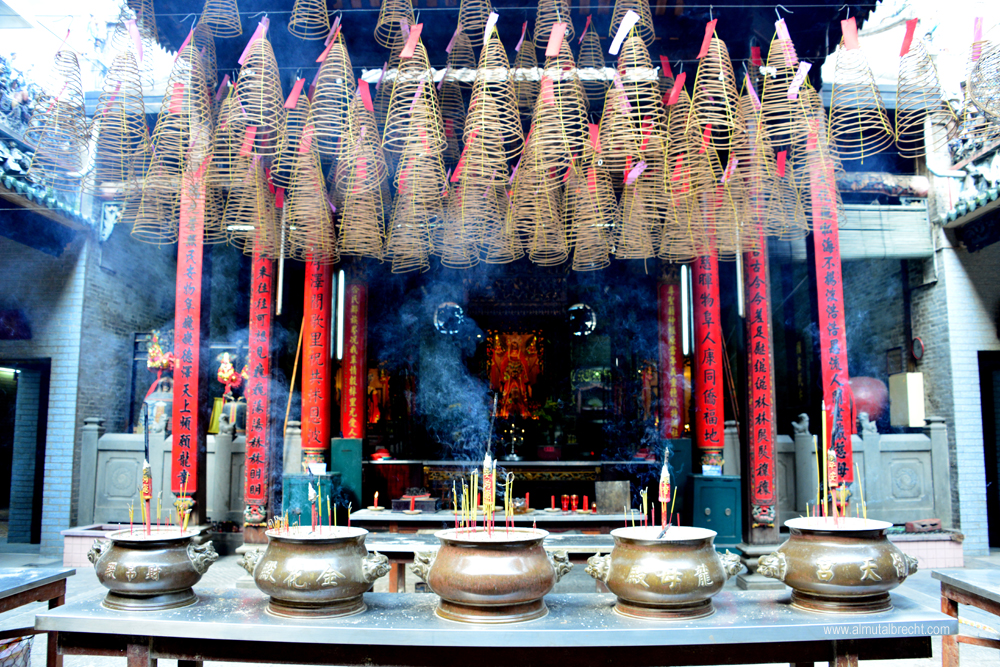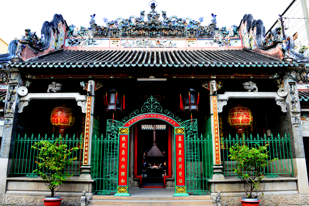 Thien Hau is a deity of traditional Chinese religion (Taoism and Buddhism). The Temple – also called Hoi-Quan-Tue-Tanh – is located on the Nguyen Trai Street in Cholon (district 5) in Ho Chi Minh City. The roof is decorated with small porcelain figurines. The interior of the pagoda is a partially covered courtyard. Inside there is the altar of Thien Hau, incense burners and spirals. When Cantonese immigrants established the temple towards the middle of the nineteenth century, they named the pagoda after Thien Hau, also the Goddess of Seafarers. New arrivals from China would have hastened here to express their gratitude for a safe passage accross the South China Sea.