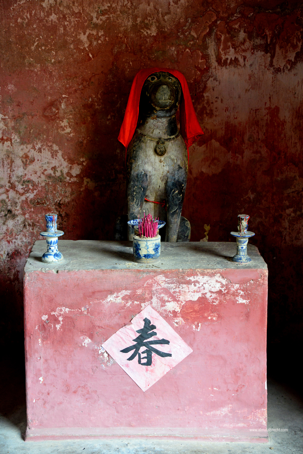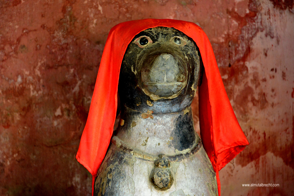 Inside the covered bridge are four statues: two dogs and two monkeys, which suggest that work began in the year of the monkey and ended in that of the dog.