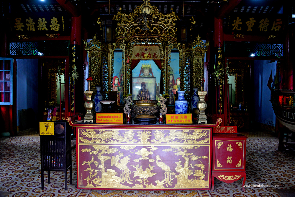 Chinese Assembly or Chua Ba Hall was built in 1740 as an umbrella organization for all Hoi An´s ethnic Chinese population. Thien Hau graces the altar. Nowadays the hall is mainly used as a language school where local ethnic chinese children and adults come to learn their mother tongue.