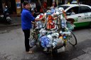vietnamese woman sells kitchenware in the streets of Hanoi, Vietnam