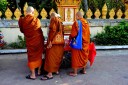 buddhist monks pray by walking in a circle around the Wat Pha That Luang in Vientiane, Laos