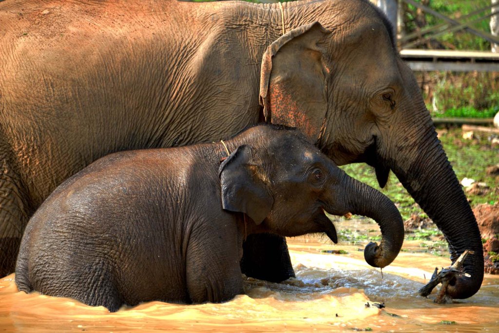 Elephants in Laos, elephant conservation center in Ban Pakham, Luang Prabang, Laos