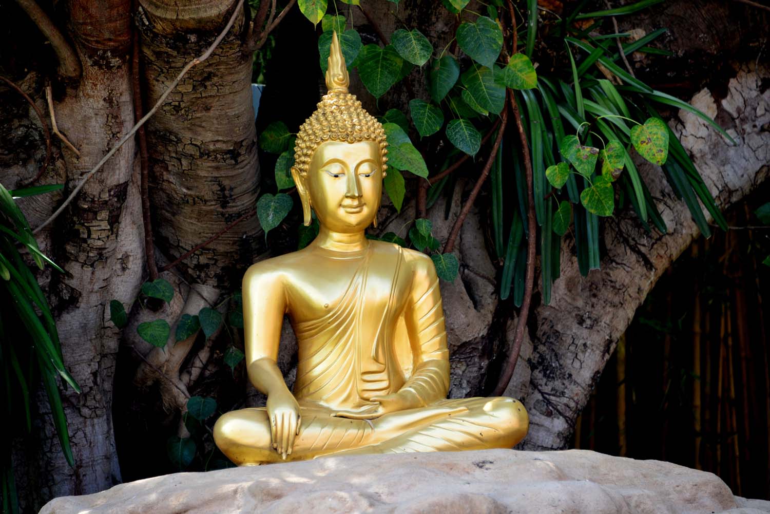 Buddha in a field of tulips in the Wat Phantao, Chiang Mai, Thailand