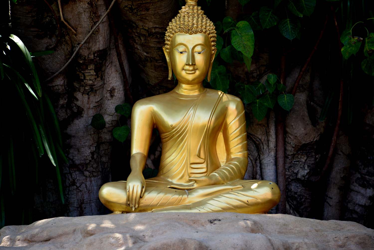 Buddha in a field of tulips in the Wat Phantao, Chiang Mai, Thailand