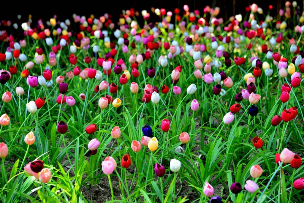 Buddha in a field of tulips in the Wat Phantao, Chiang Mai, Thailand