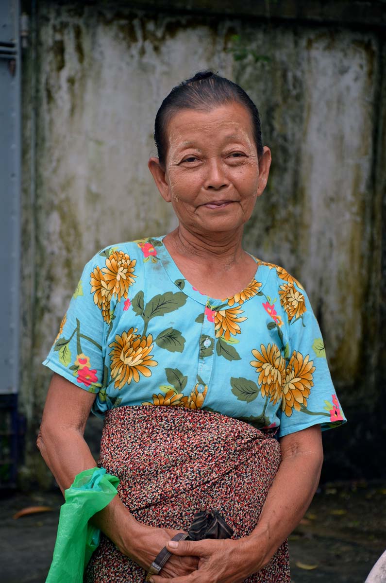 Burmese woman with white elephant, Yangon, Myanmar (Burma)