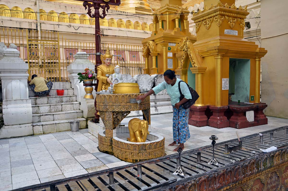 Woman at an altar in the Swedagon Pagode, Yangon, Myanmar