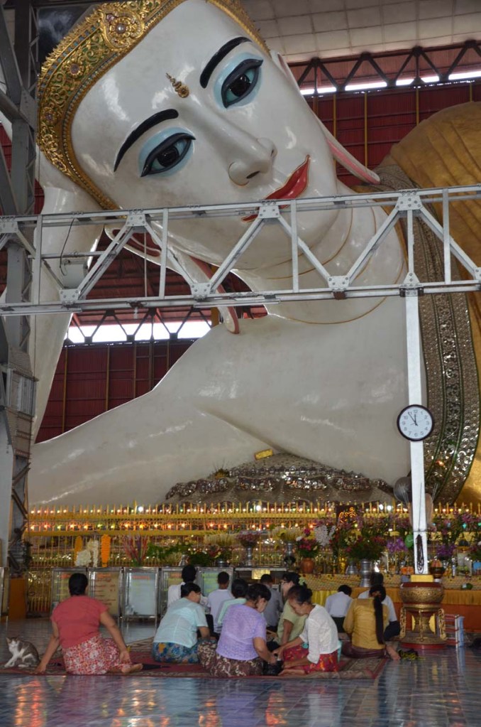 Chankhtatgyi Buddha Temple: white reclining buddha in Yangon, Myanmar (Birma)