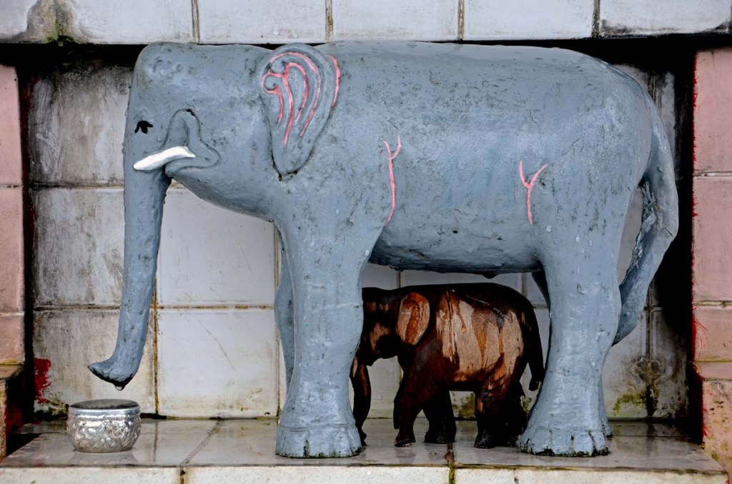 Chankhtatgyi Buddha Temple: white reclining buddha in Yangon, Myanmar (Birma)