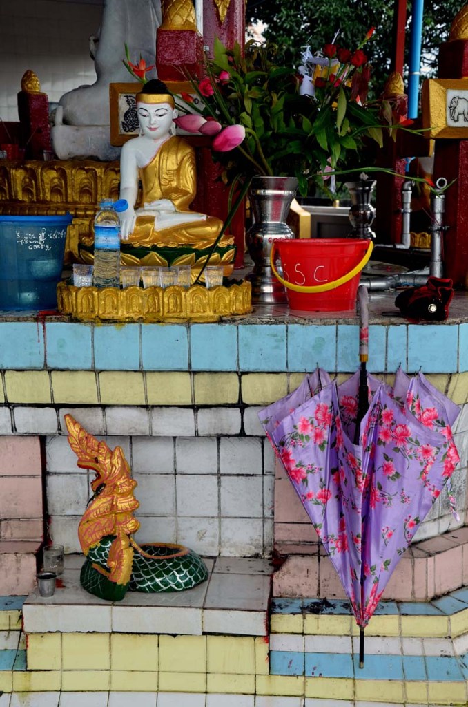 Chankhtatgyi Buddha Temple: white reclining buddha in Yangon, Myanmar (Birma)
