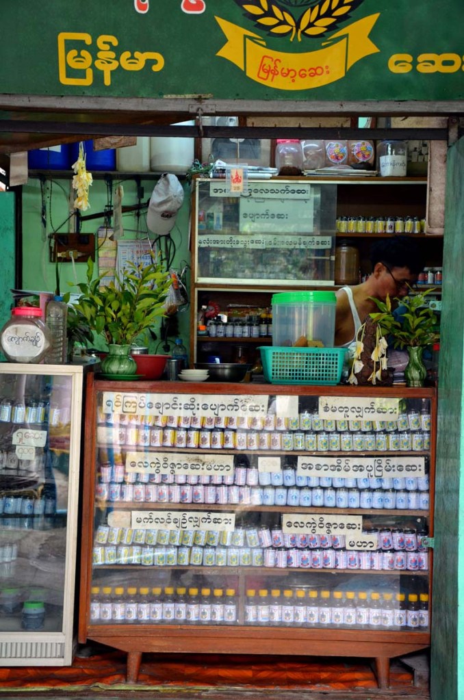 Chankhtatgyi Buddha Temple: white reclining buddha in Yangon, Myanmar (Birma)