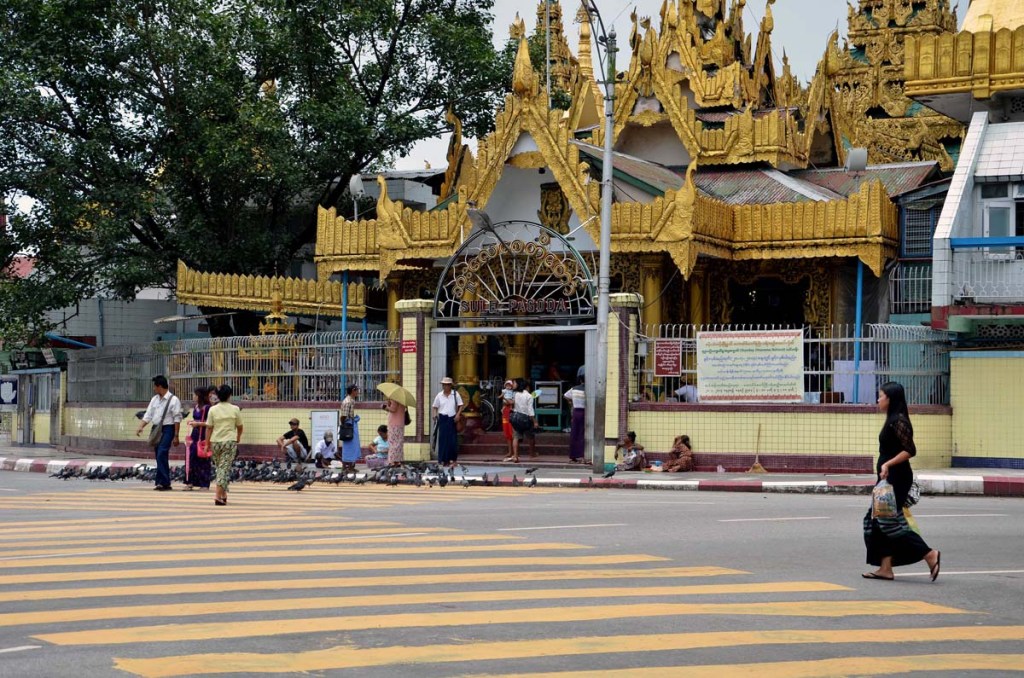 in front of the SULE PAGODA in Yangon, Myanmar (Birma)