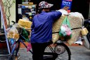 vietnamese woman with streetfood on the bicycle, Hanoi