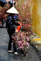 a bicycle full of flowers and a masked vietnamese woman in Hanoi