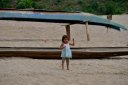 laotian girl on the beach of the Mekong river in Laos