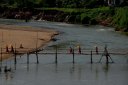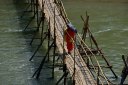 buddhist monks on a bamboo bridge in Luang Prabang, Laos
