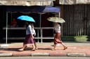 laotian women with umbrella, Vientaine