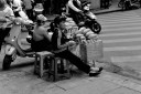 old woman sleeps with the head on a cookie tin, Hanoi