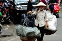 portrait of a vietnamese woman who works as a garbage woman in Hanoi